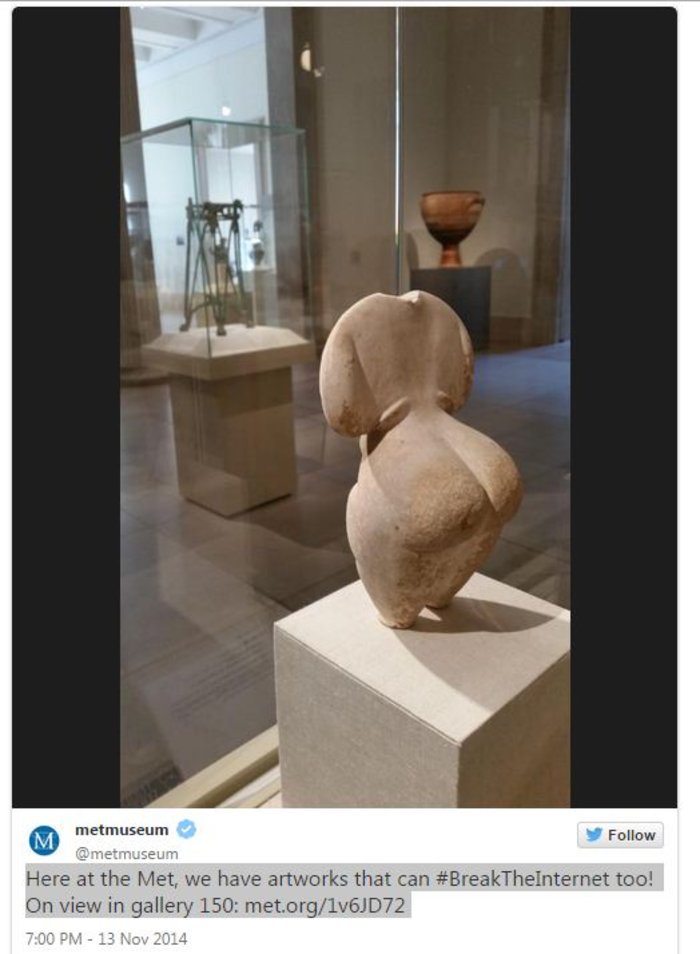 Για την ακρίβεια, το μουσείο Metropolitan της Νέας Υόρκης ανάρτησε στο twitter τη φωτογραφία ενός κυκλαδίτικου ειδωλίου, η πίσω όψη του οποίου... θυμίζει Καρντάσιαν.